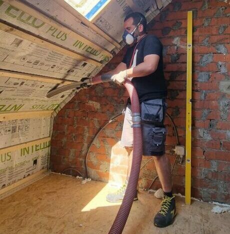 La cellulose est injectée sous pression dans une cavité fermée (entre chevrons, ossature bois ou contre-cloison). Par conséquent, elle est compactée à une densité précise afin d’éviter tout tassement dans le temps.